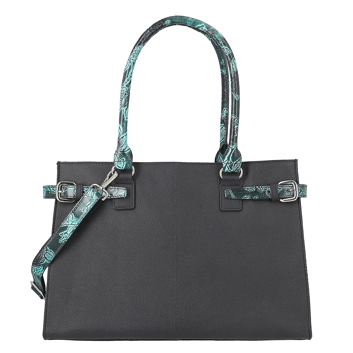 VIVID BY SUKRITI Black & Green Hand Painted Genuine Leather Tote Bag with Detachable Shoulder Strap