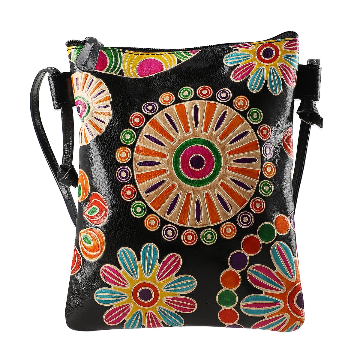 Vivid by Sukriti Black Mandala Pattern Hand Painted Genuine Leather Crossbody Bag