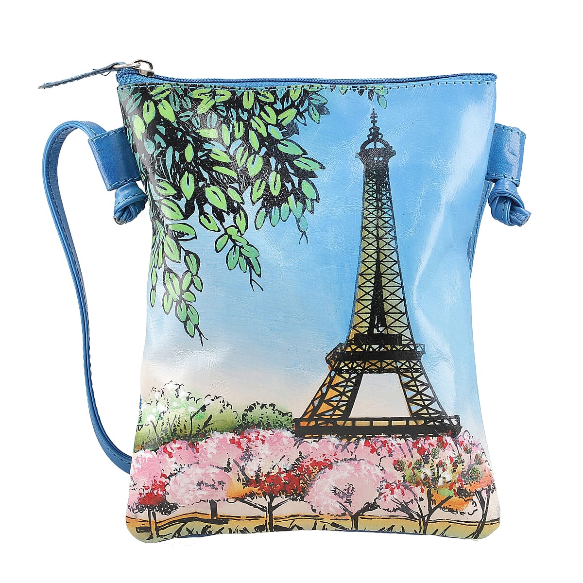 Vivid by Sukriti Eiffel Tower Pattern Hand Painted Genuine Leather Crossbody Bag
