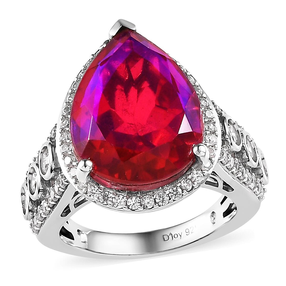 Step into a realm of mesmerizing beauty with the volcanic quartz ring, where a pear-shaped gemstone takes center stage, surrounded by a luminous halo of white zircons. Encased in platinum over sterling silver, this ring seamlessly melds elegance with ethereal charm, promising to be your timeless treasure.