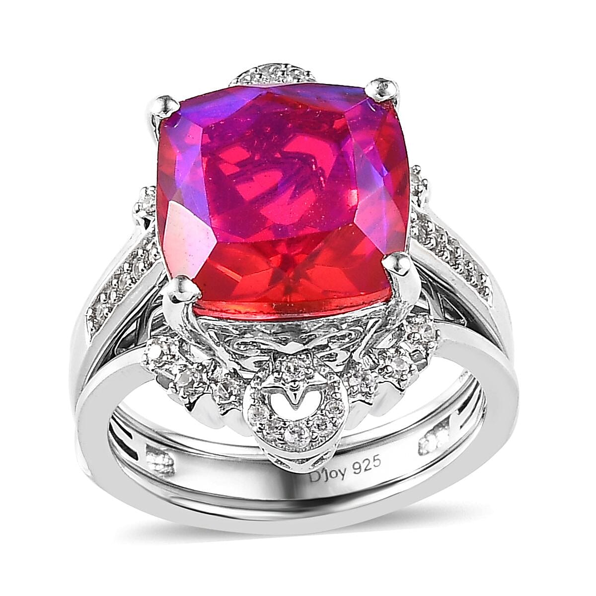 Volcanic Quartz (Triplet) and White Zircon Set of 2 Ring in Platinum Over Sterling Silver (Size 7.0) 8.50 ctw