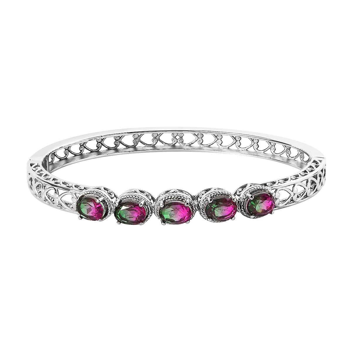 Watermelon Quartz (Triplet) Bangle Bracelet in Stainless Steel (8.00 In) 7.30 ctw