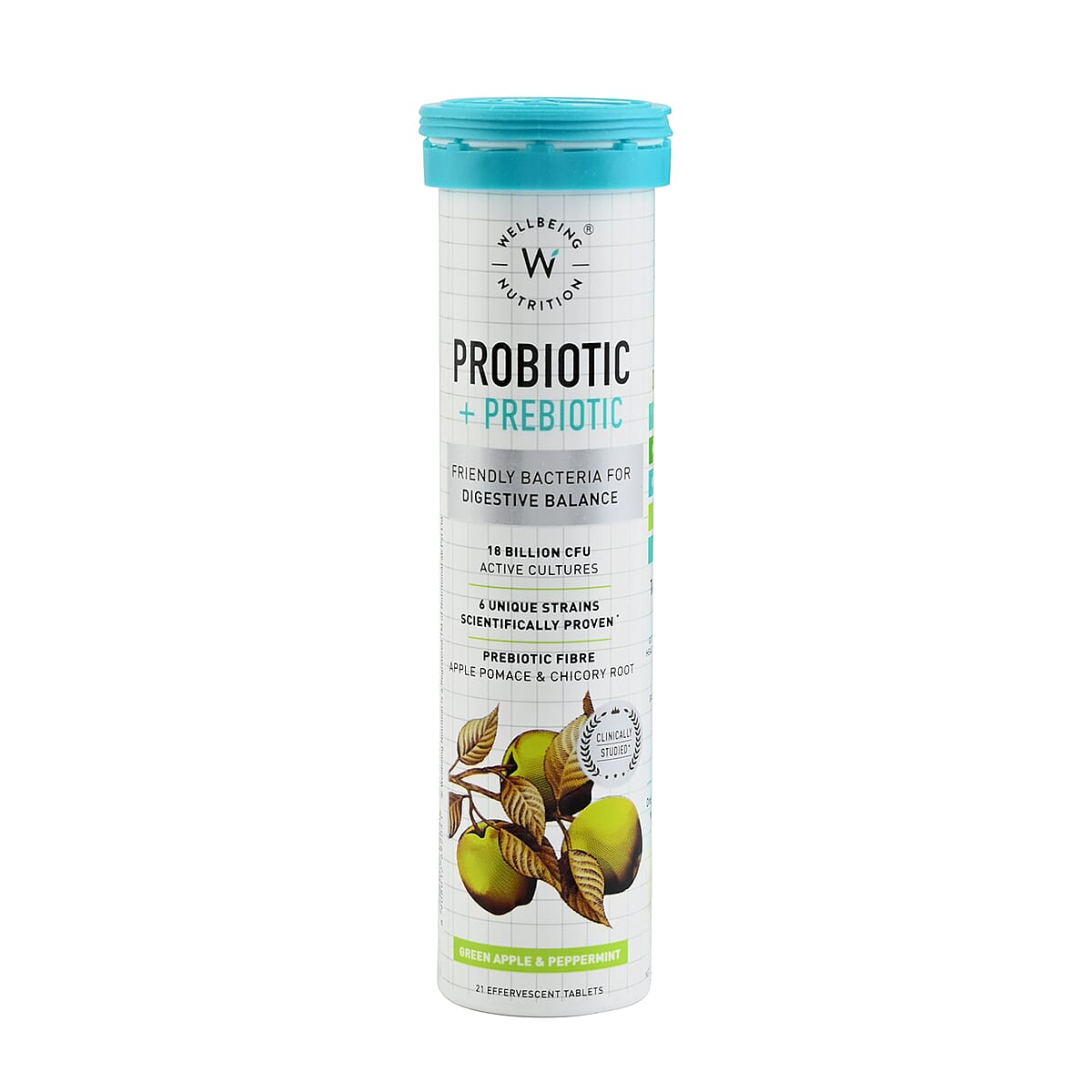 This Wellbeing Nutrition is a clinically approved combination of Probiotic + Prebiotic. It promotes digestive balance with a blend of 6 active probiotic cultures and clinically studied prebiotic fiber – Apple Pomace and Chicory root (Inulin) for complete Gut Health.