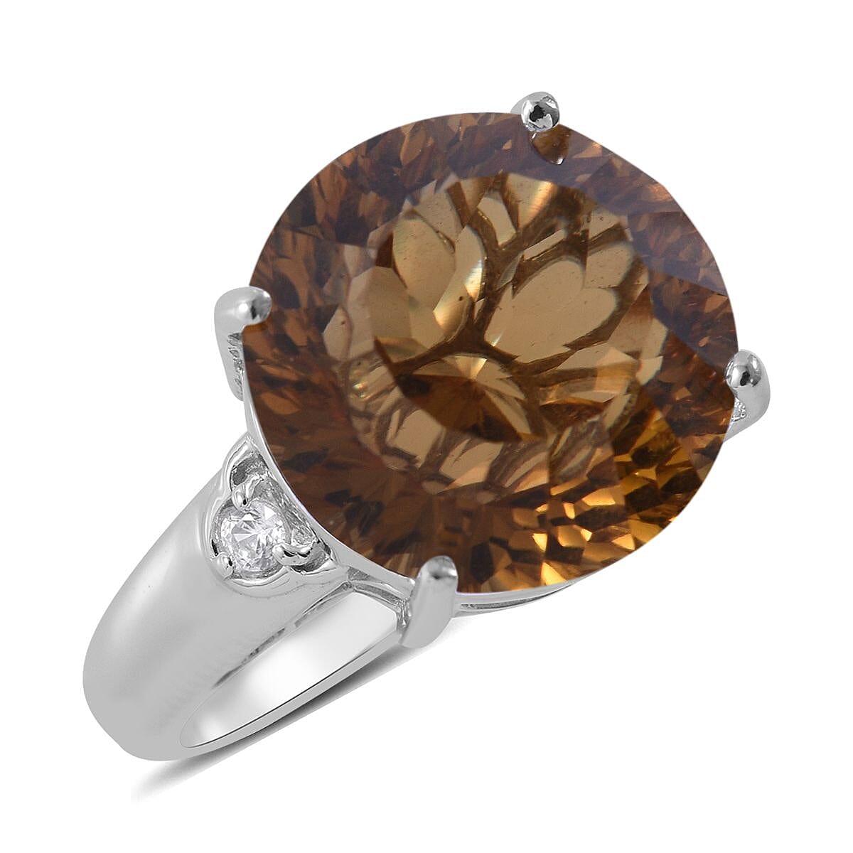 Whirlpool Cut Brazilian Citrine and White Zircon Ring in Platinum Over Sterling Silver (Size 7.0) 12.00 ctw