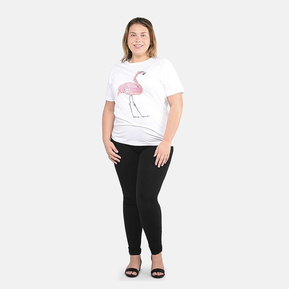 White 100% Cotton Flamingo Print T-Shirt (L-XXL)