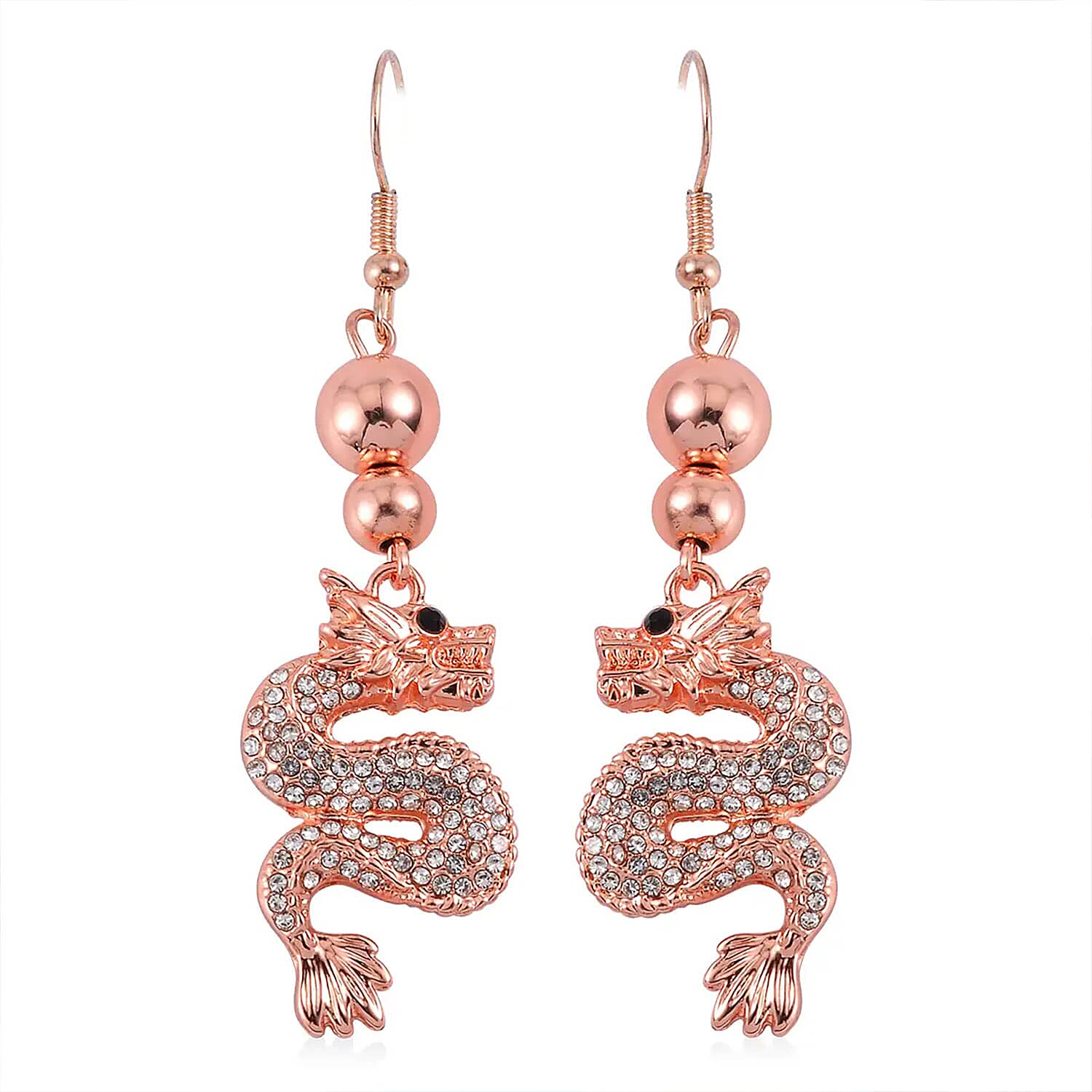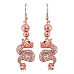White and Black Austrian Crystal Dragon Earrings in Rosetone