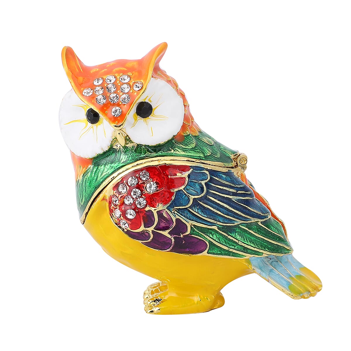 This beautifully enameled trinket jewelry box is inspired by nature’s theme. This unique design jewelry box can be used for home furnishings and decoration as well. The box is adorned with fine enameling and sparkling crystals. Enameling is done manually for high end finishing, and it saves from outer damage.