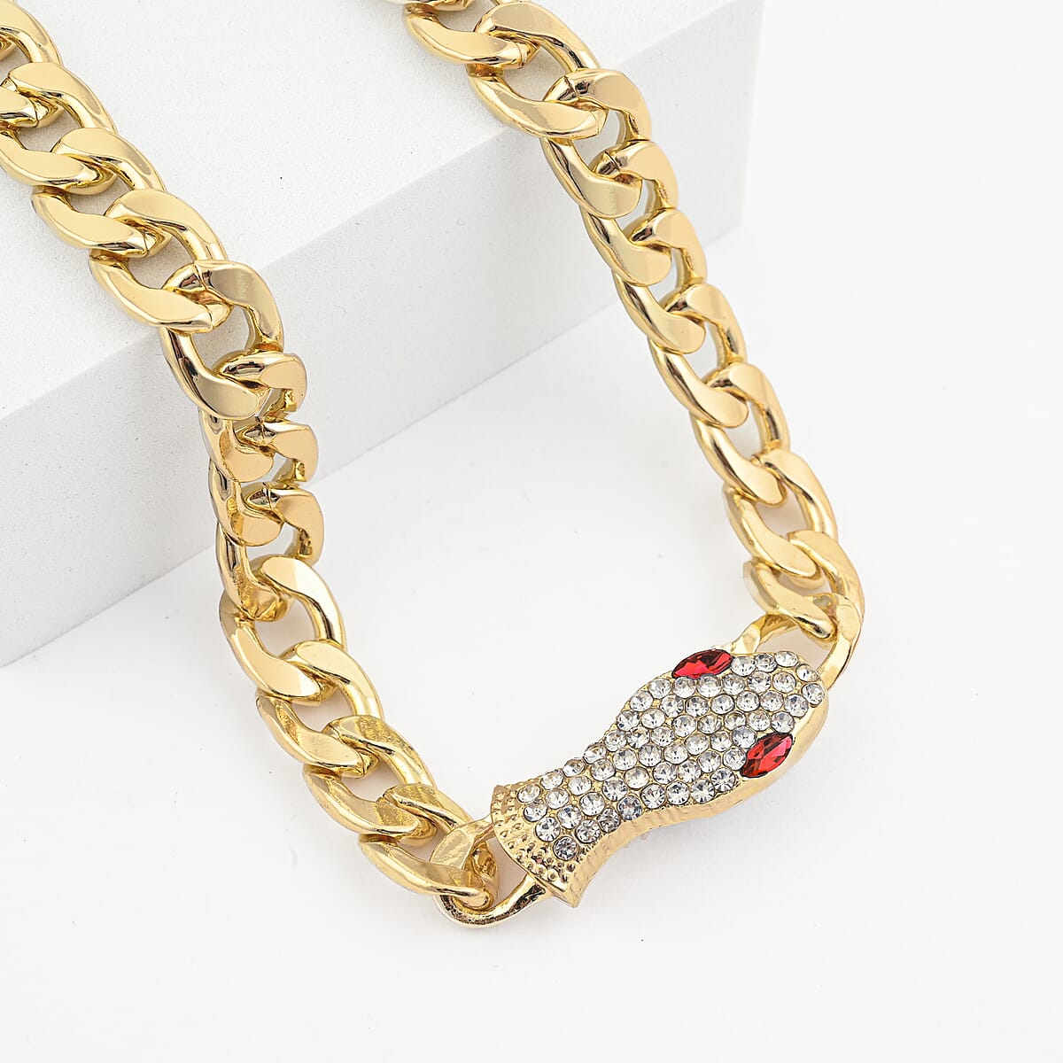 White and Red Austrian Crystal Serpent Necklace (21 Inches) in Goldtone