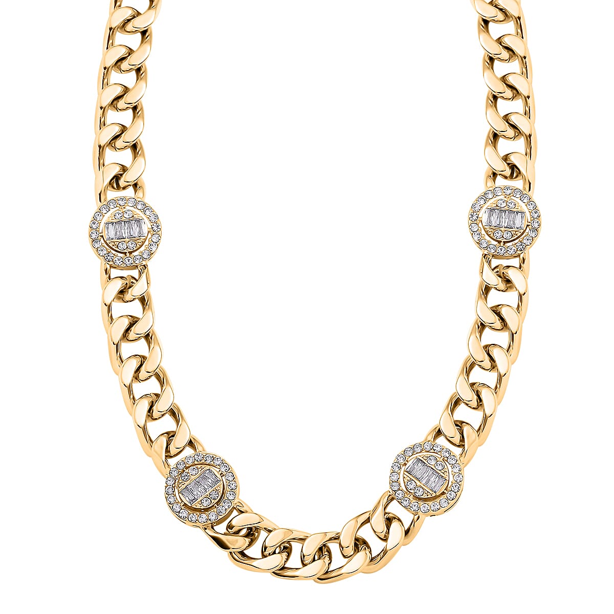 White Austrian Crystal Curb Chain Station Necklace 20 Inches in Goldtone with Extender