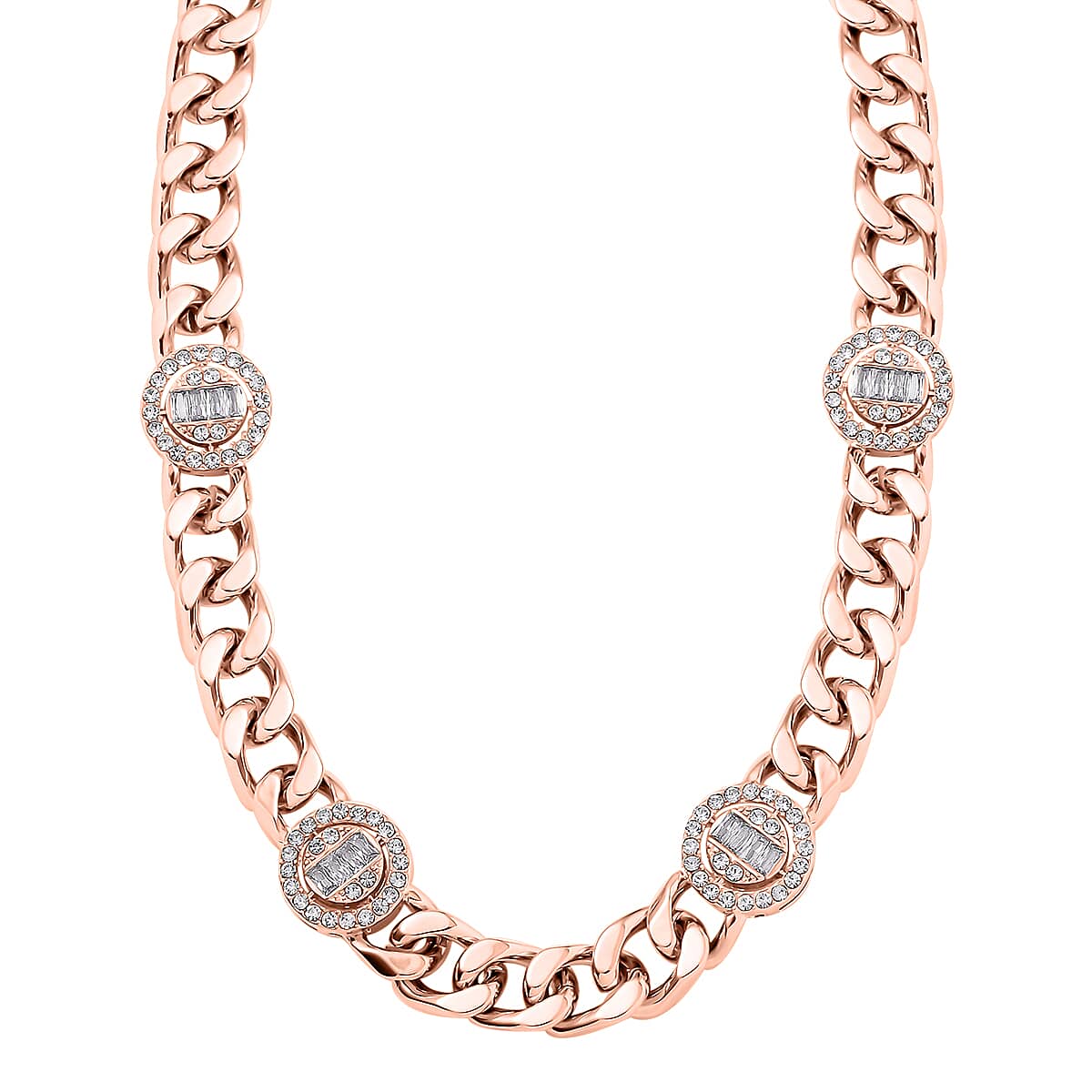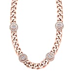 White Austrian Crystal Curb Chain Station Necklace in Rosetone with Extender 20 Inches