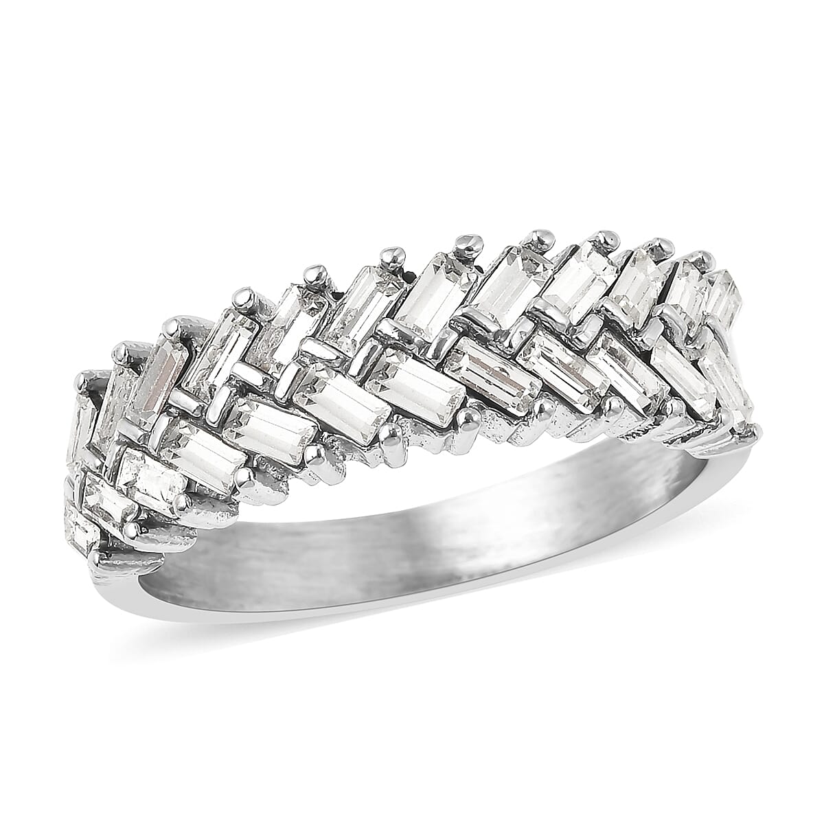 White Austrian Crystal Fern Leaf Ring in Stainless Steel (Size 6.0) 0.80 ctw