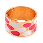 White Austrian Crystal, White and Rose Red Color Enameled Bangle Bracelet in Goldtone (7.00 In)