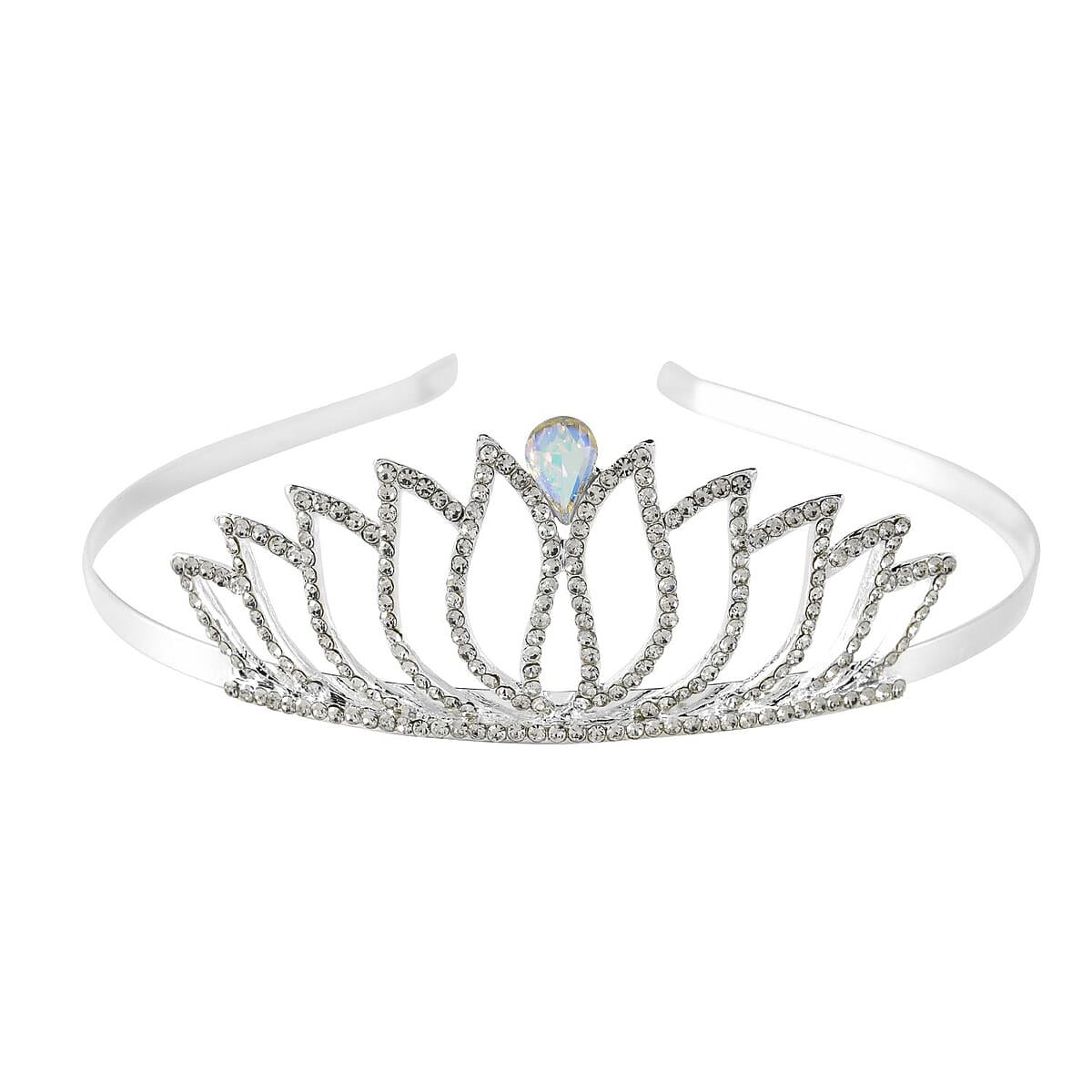 White Austrian Crystal, White Aurora Borealis Glass Crown Tiara in Silvertone