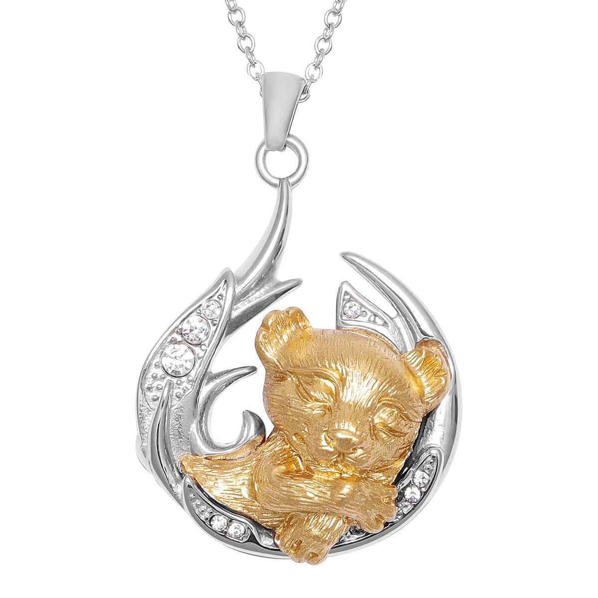 White Austrian Crystal, Yellow Resin Sleepy Lion Pendant Necklace (20 Inches) in Stainless SteelWhite Austrian Crystal, Yellow Resin Sleepy Lion Pendant Necklace (20 Inches) in Stainless Ste