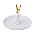 White Body with Gold Ear Bunny Design Ceramic Jewelry Holder