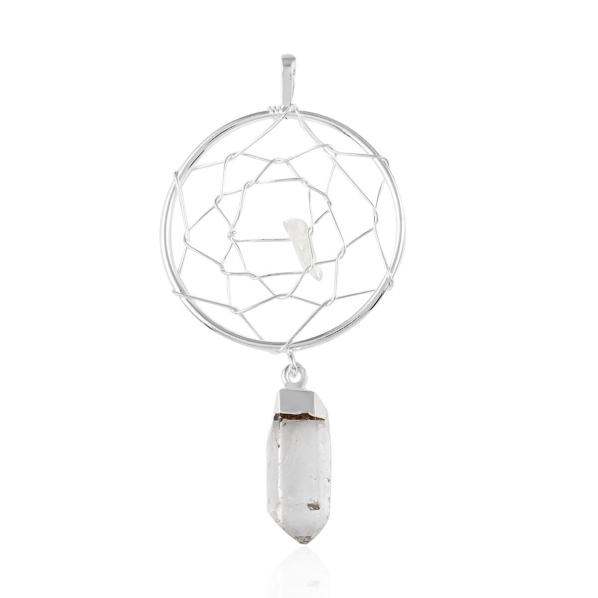 White Crystal Dream Catcher Pendant without Chain in Silvertone