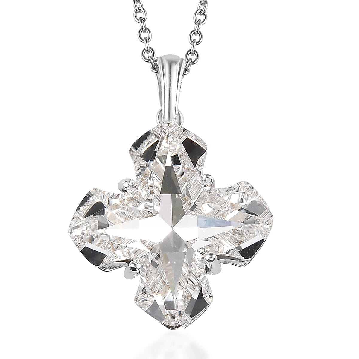 White Crystal Fancy Pendant in Sterling Silver with Stainless Steel Chain 20 Inches