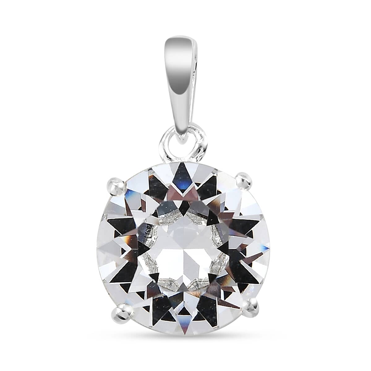 White Crystal Solitaire Pendant without Chain in Sterling Silver