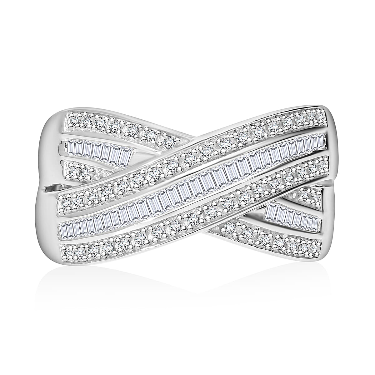 White Diamond 0.50 ctw Bridge Over Ring in Platinum Over Sterling Silver (Size 10.0)