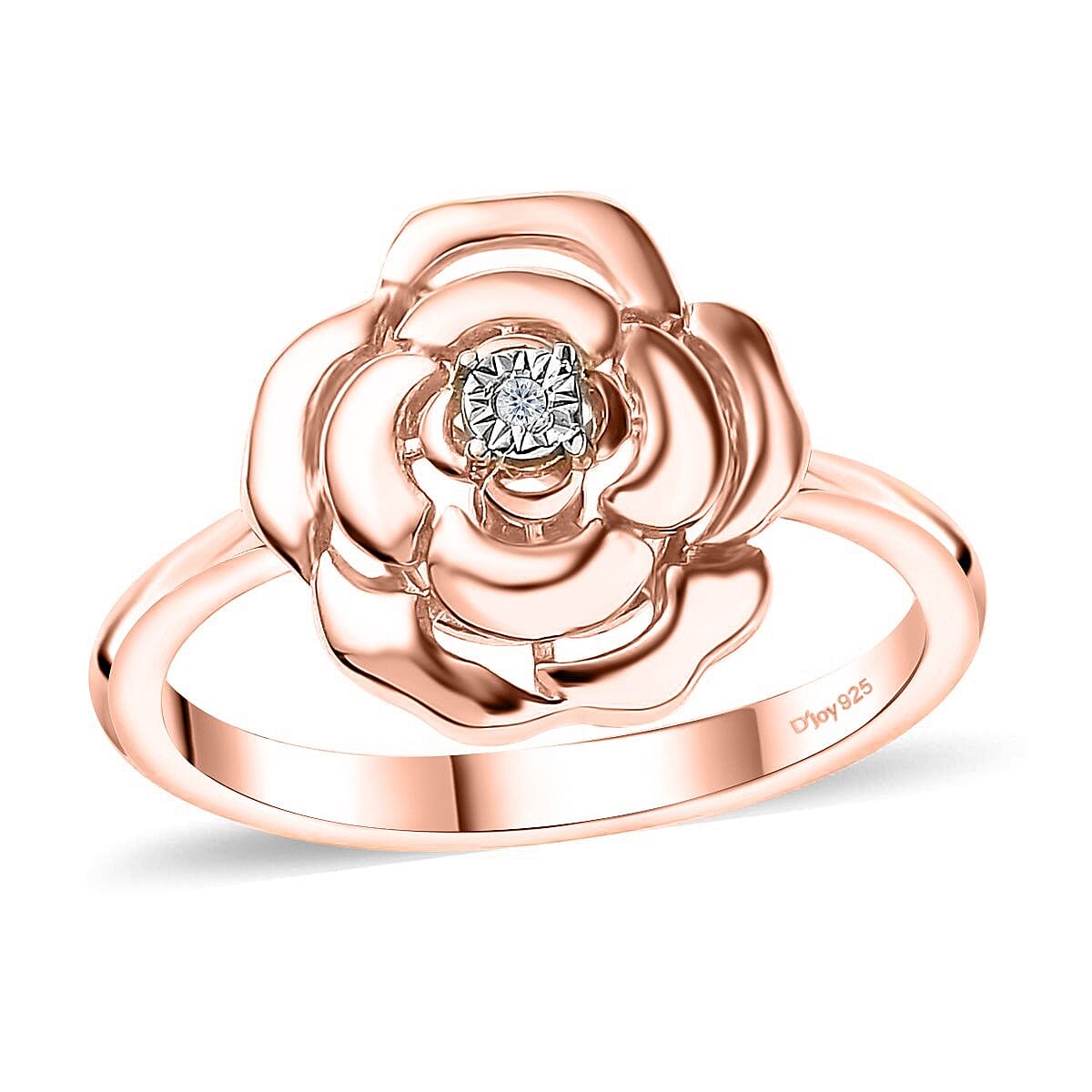 White Diamond Accent Rose Flower Ring in 14K Rose Gold Over Sterling Silver (Size 10.0)