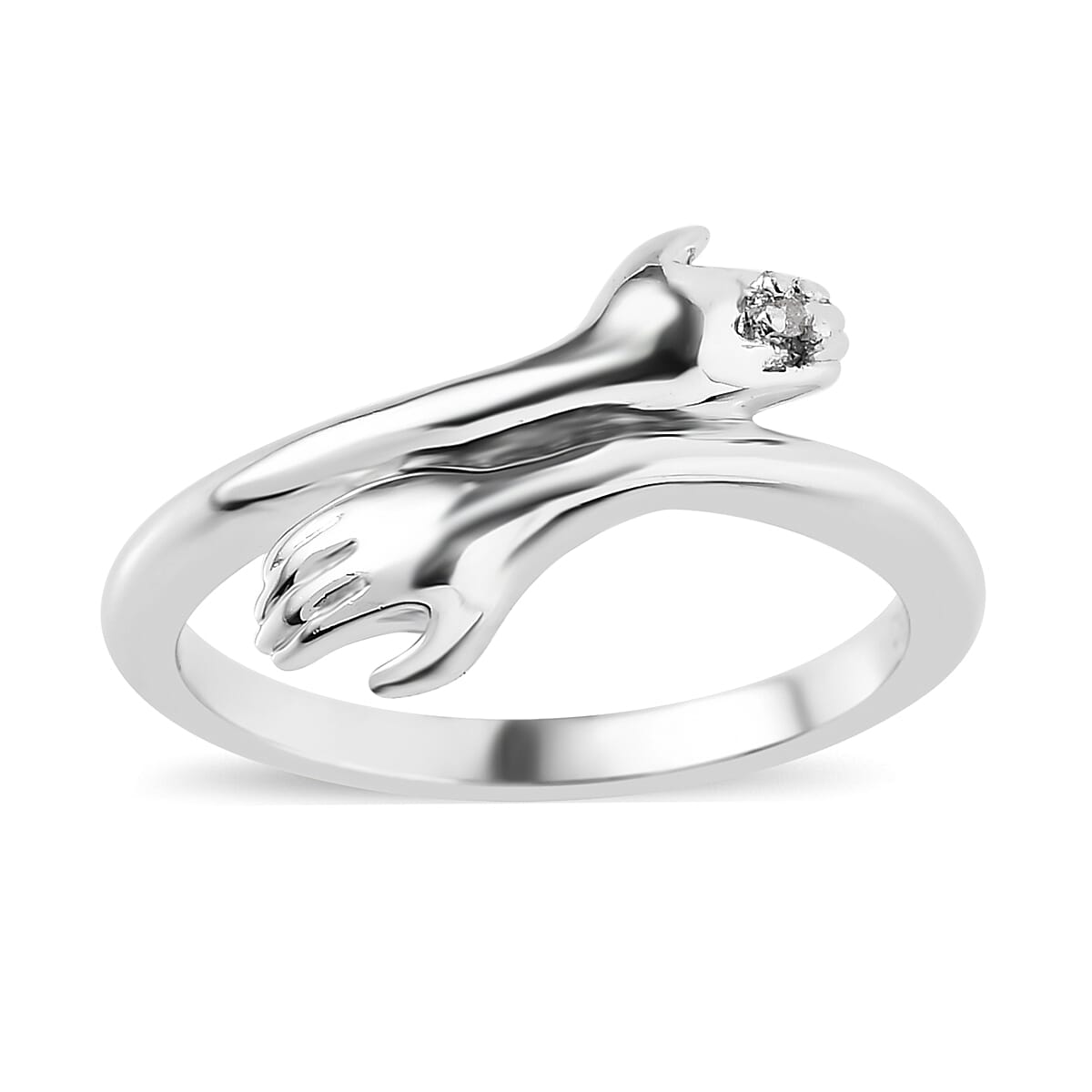 White Diamond Love Hugging Hand Ring in Platinum Over Sterling Silver