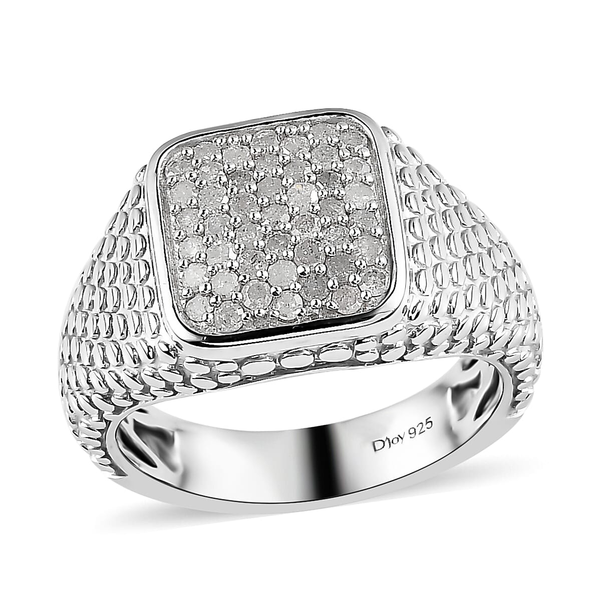White Diamond Men's Ring in Platinum Over Sterling Silver (Size 14.0) 1.00 ctw