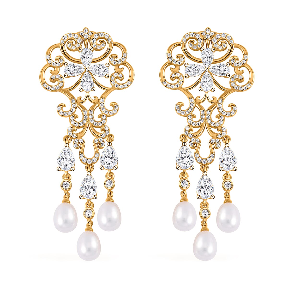 These white freshwater cultured pearl and simulated diamond earrings are crafted in sterling silver. Inspired by chandeliers, which symbolize divine guidance, they combine lustrous pearls with brilliant, simulated diamonds to add an elegant touch to any ensemble.
