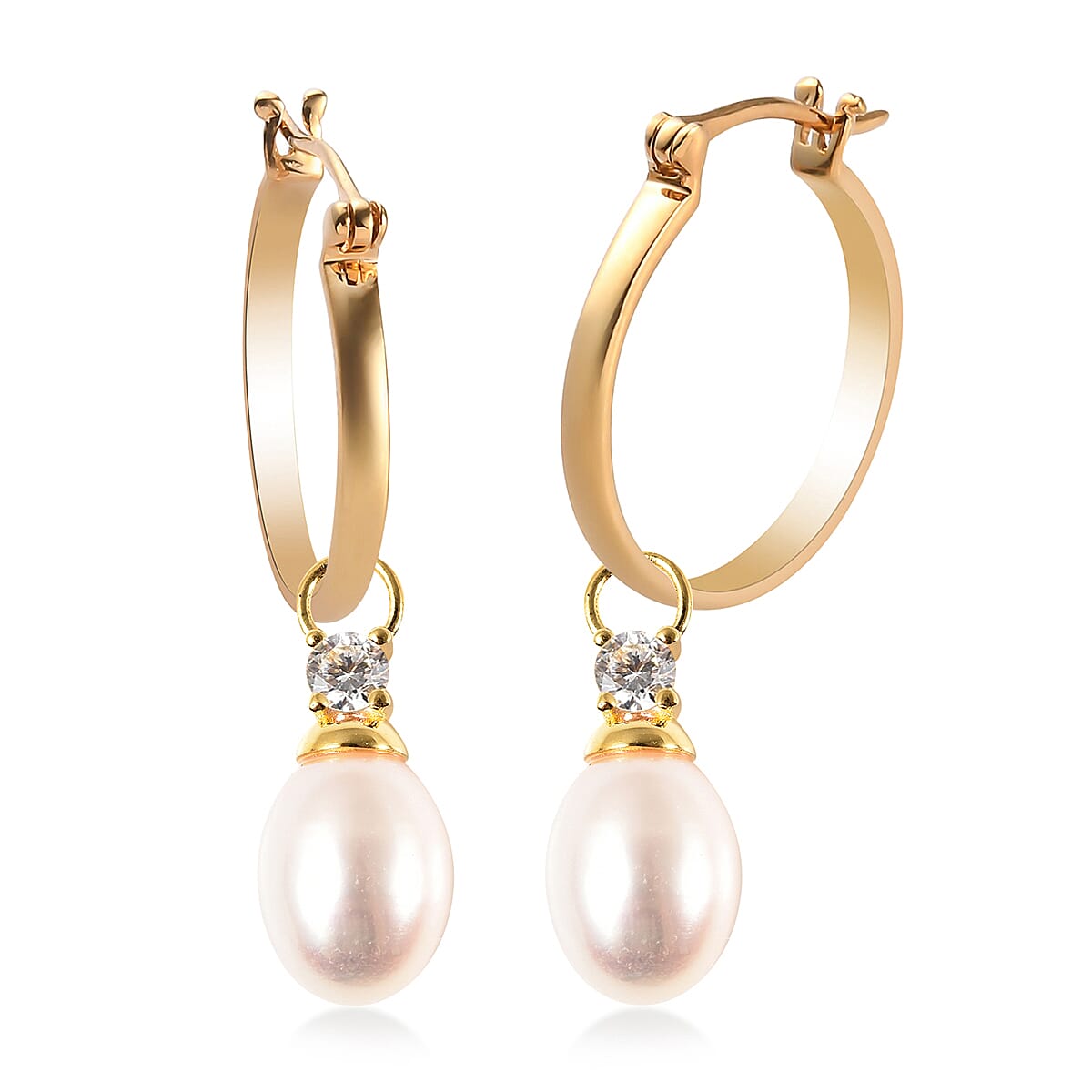 White Freshwater Pearl and Simulated Diamond Interchangeable Earrings Drop Pearl Charms in 14K Yellow Gold Over Sterling Silver