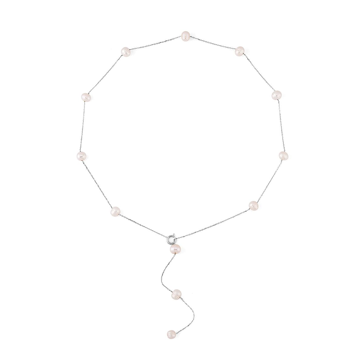 The freshwater pearl lariat necklace is an elegant lariat necklace for women. It symbolizes the bonds formed between people. Featuring freshwater pearls, this pearl necklace is coveted for its satiny luster and durability. It is crafted with stainless steel.