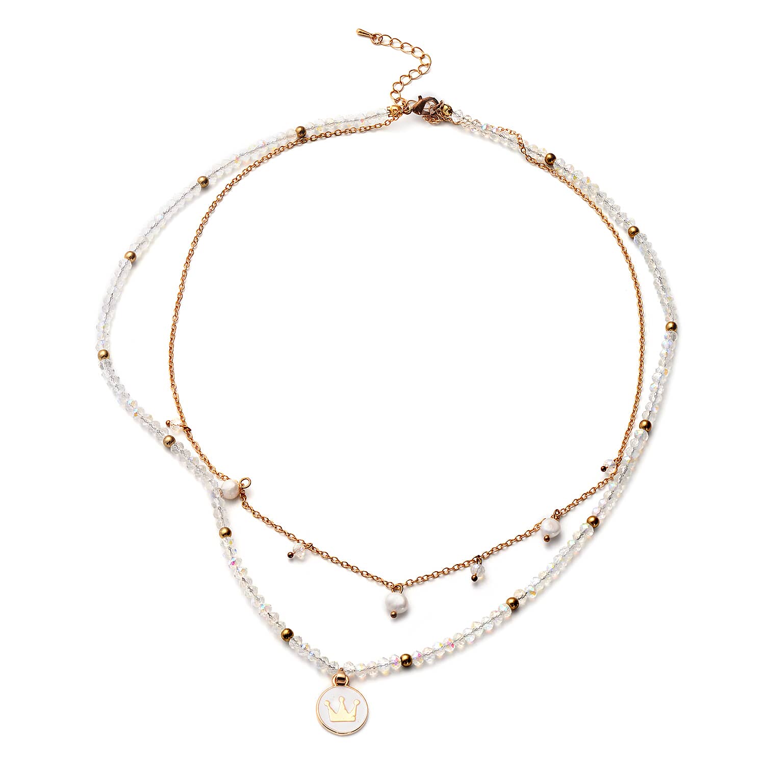 Elevate your collection with this white freshwater pearl, resin and glass necklace in durable metal. This elegant 2-row layered necklace for women features a coin charm, adding sophistication to any outfit. Perfect for casual or evening looks, blending timeless elegance with modern layering style.