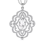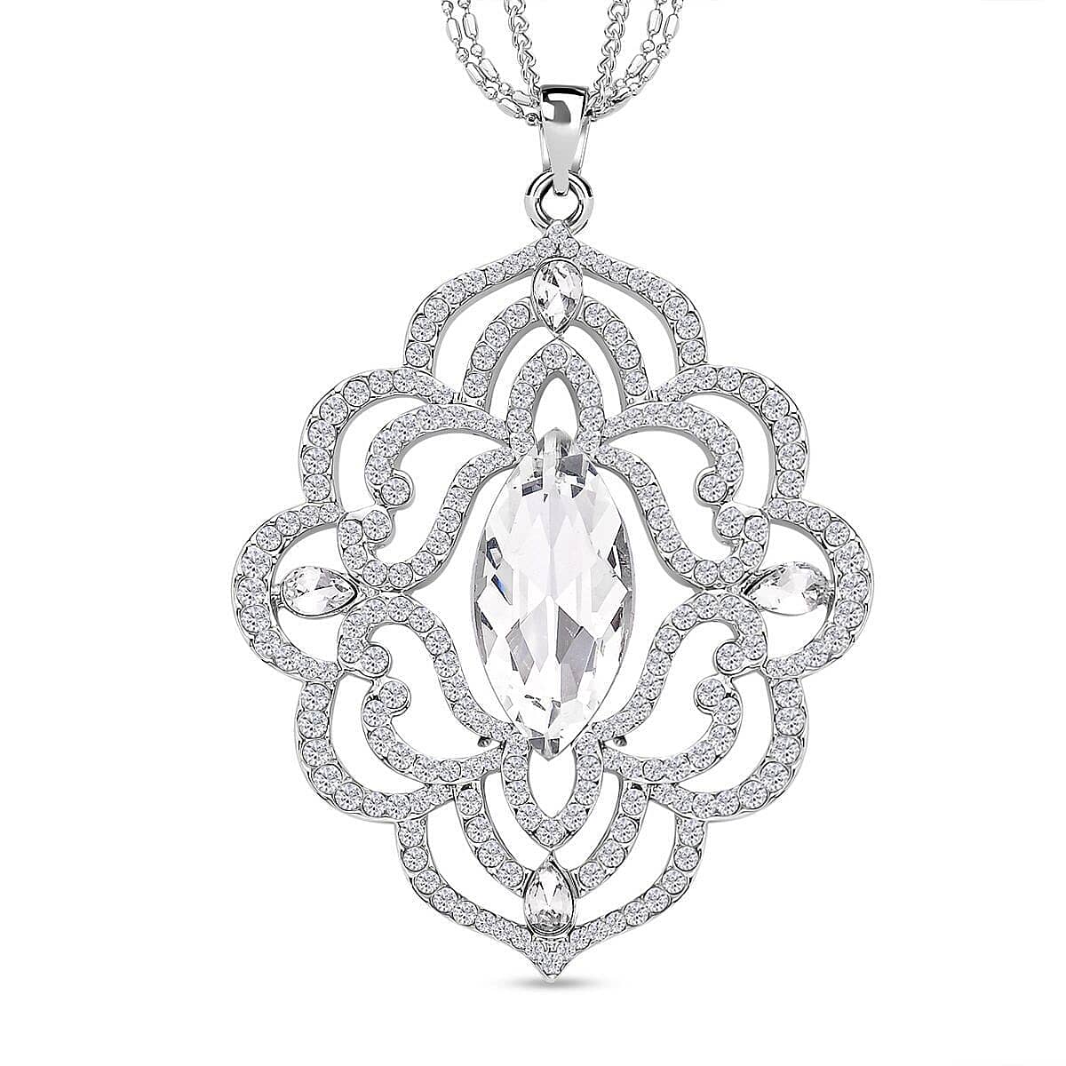 White Glass and Austrian Crystal Pendant Necklace 28-30 Inches in Silvertone