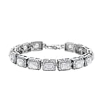 White Glass and Austrian Crystal Tennis Bracelet in Silvertone (7-9In)