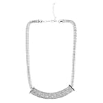 The glass statement necklace is striking for women, symbolizing strength and boldness. Featuring white glass, this necklace is coveted for its shine and affordability. It is securely set for durability. Its elegant design makes it a perfect addition to any outfit.