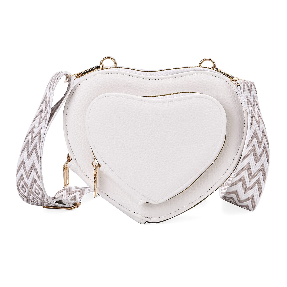 White Heart Shape Faux Leather Crossbody Bag with Adjustable Shoulder Strap