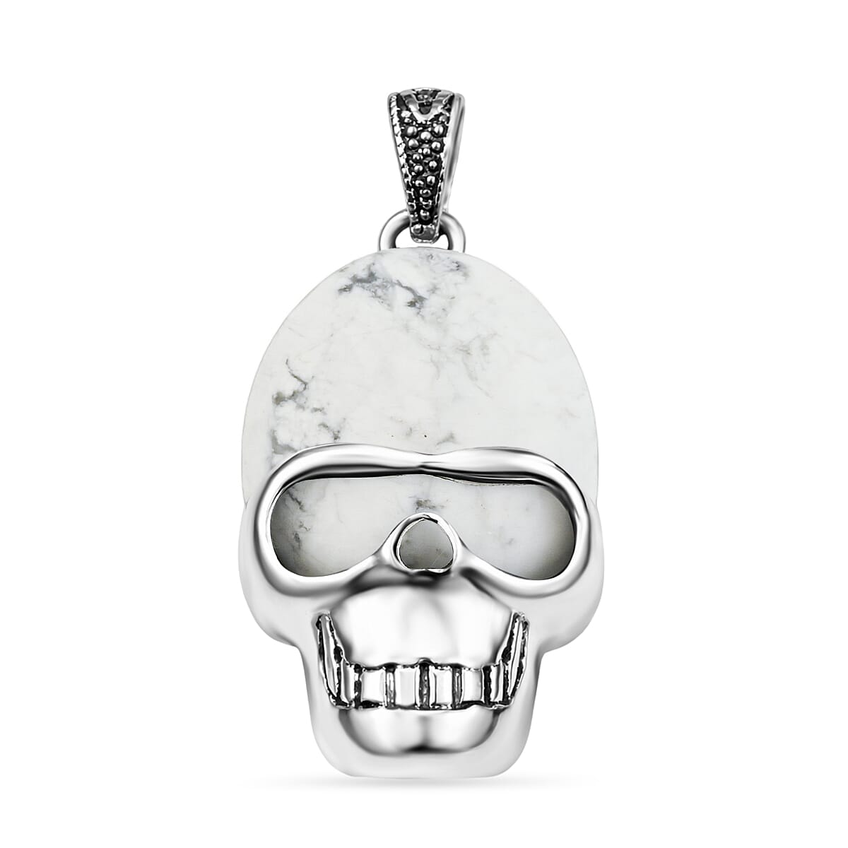 White Howlite 15.75 ctw Skull Pendant in Silvertone with Stainless Steel Necklace 20 Inches