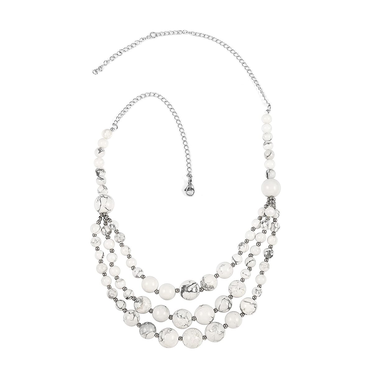 White Howlite Three-Row Necklace 22-24 Inches in Rhodium Over Stainless Steel 279.80 ctw