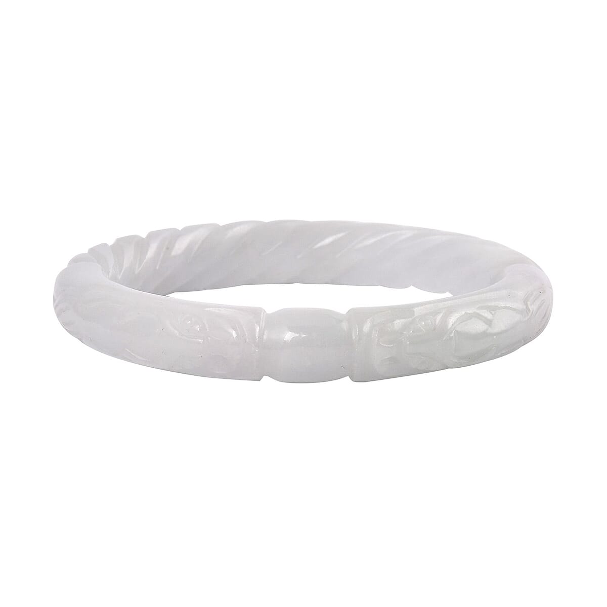 White Jade Carved Dragon Bangle Bracelet (7.25 In) 282.50 ctw