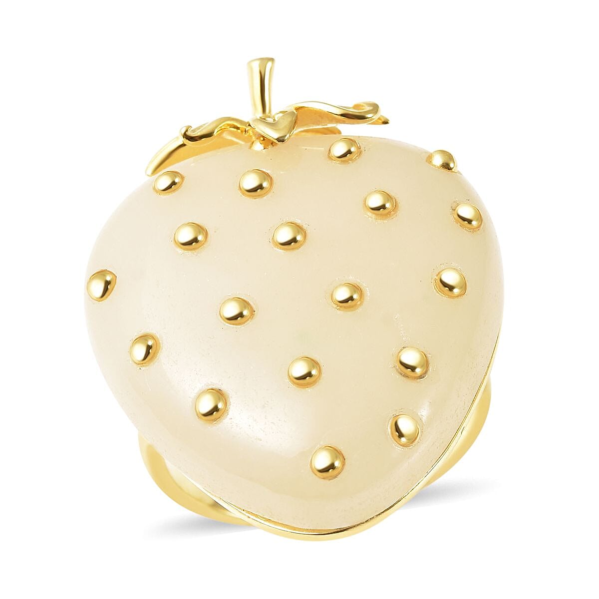 White Jade Strawberry Ring in Vermeil Yellow Gold Over Sterling Silver (Size 6.0) 38.75 ctw