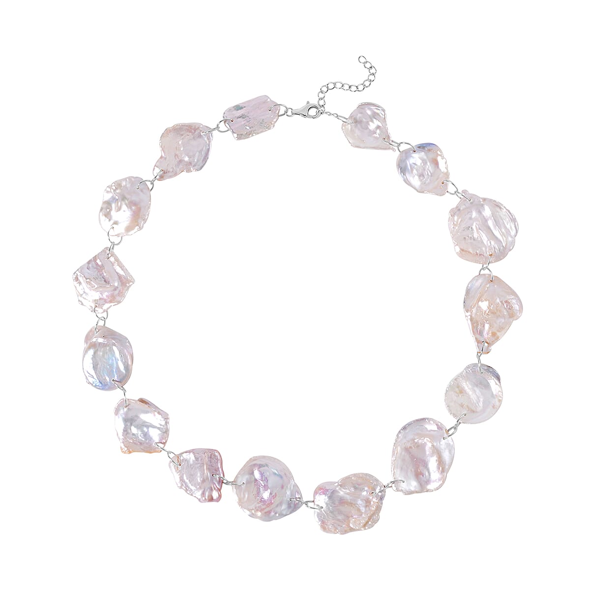 White Keshi Pearl Necklace 18 Inches in Rhodium Over Sterling Silver