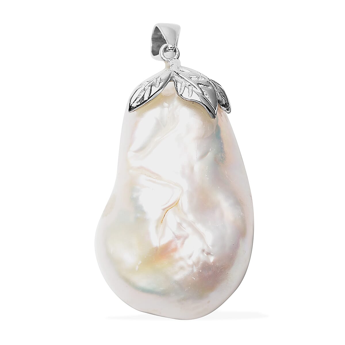 White Keshi Pearl Pendant in Rhodium Over Sterling Silver