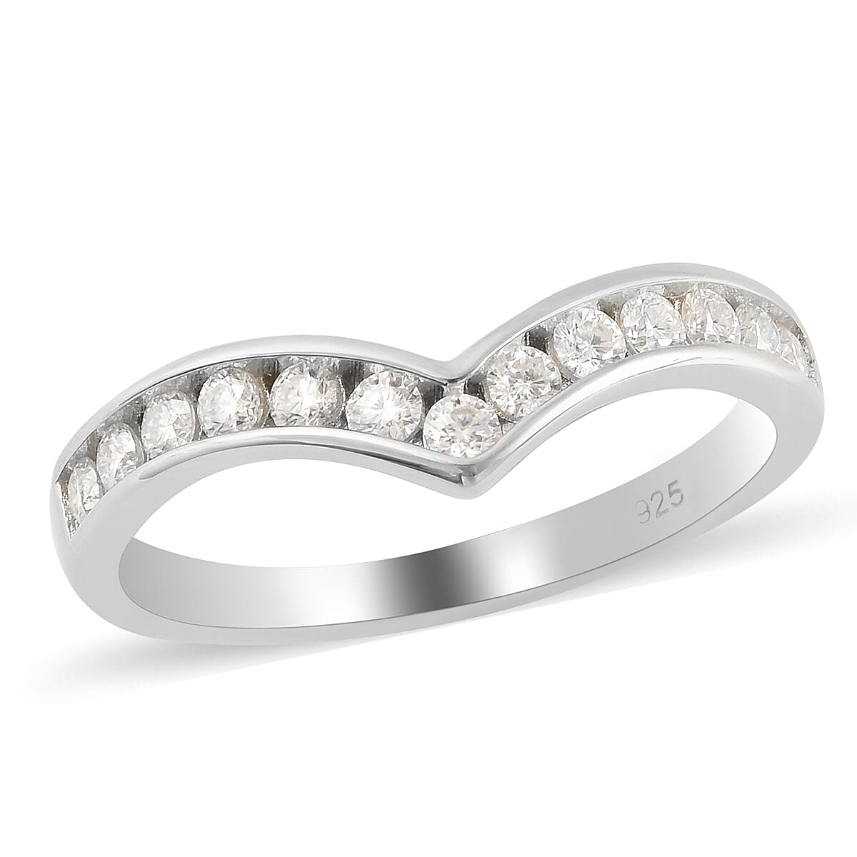 White Moissanite Wishbone Ring in Rhodium Over Sterling Silver (Size 8.0) 0.40 ctw