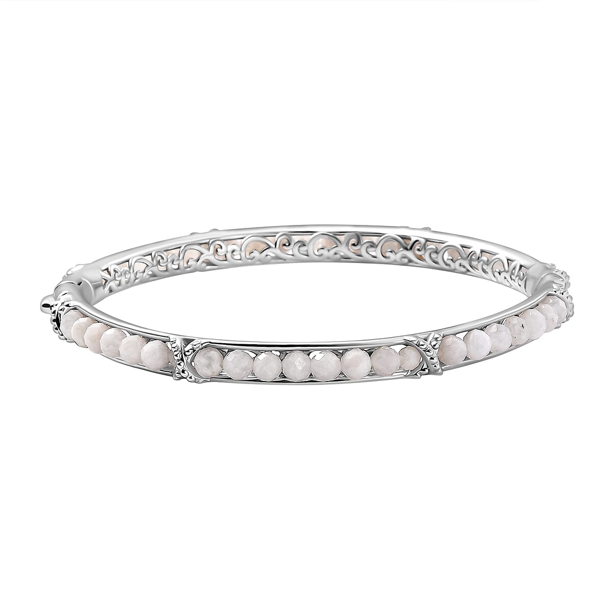 White Moonstone 13.90 ctw Bangle Bracelet in Platinum Bond (7.50 In)