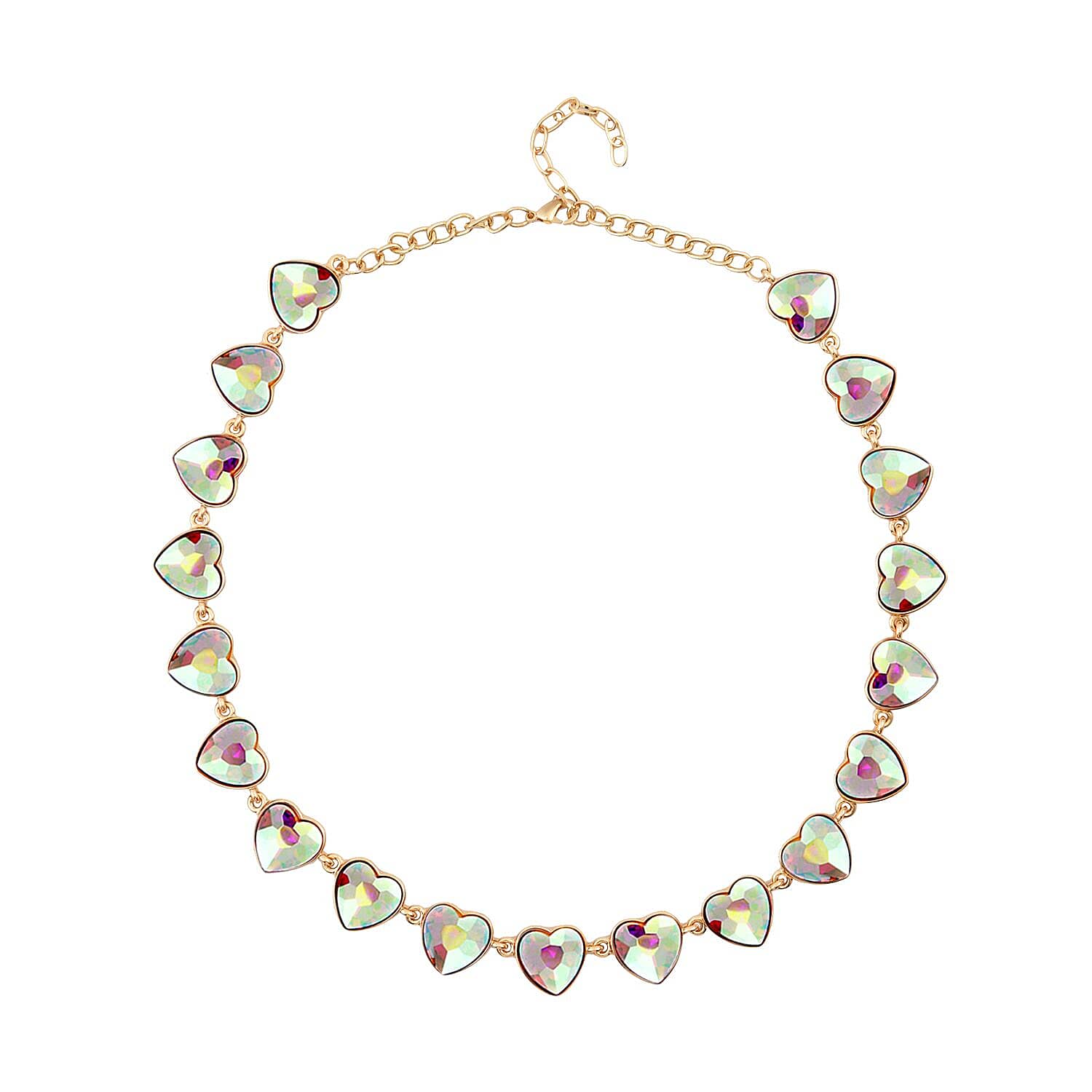 White Mystic Color Glass Heart Necklace 20-22 Inches in Goldtone