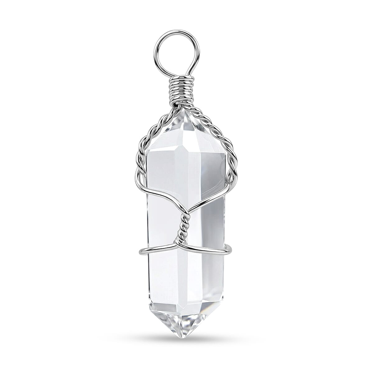 White Quartz 15.00 ctw Taper Point Pendant in Silvertone with Stainless Steel Necklace (20 Inches)