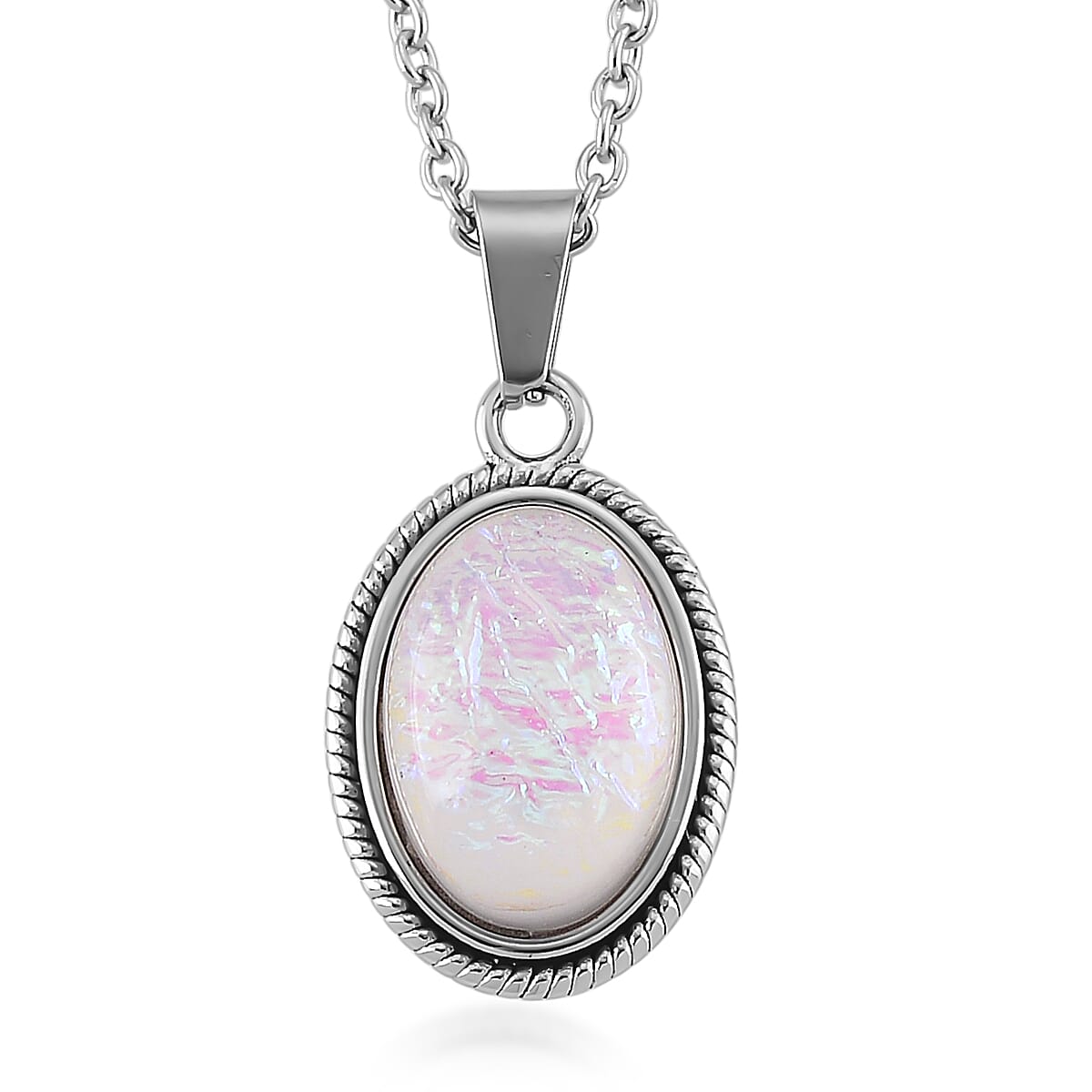 White Resin Ethereal Frost Aura Pendant Necklace (20-22 Inches) in Stainless Steel