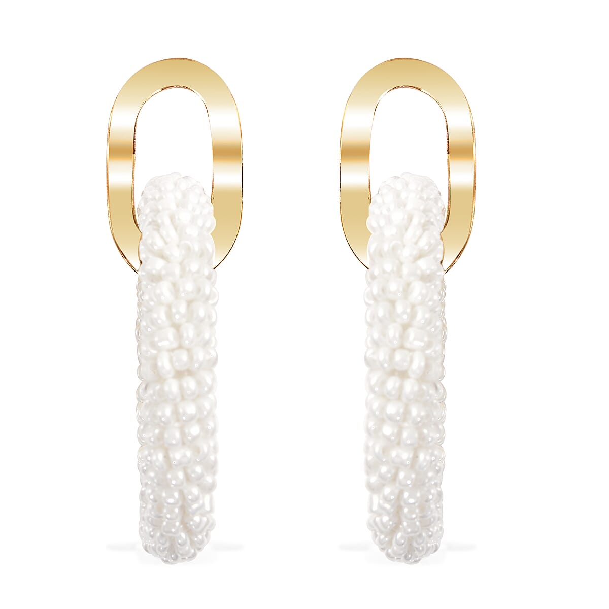These hoop earrings in goldtone display the beauty of seed beads. A popular fashion statement, hoop earrings are a favorite piece of jewelry worn by most women. With summers around the corner, these earrings are adornment.