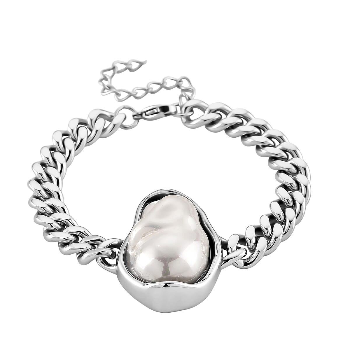 White Shell Pearl Bracelet in Stainless Steel (7.50-9.50In)