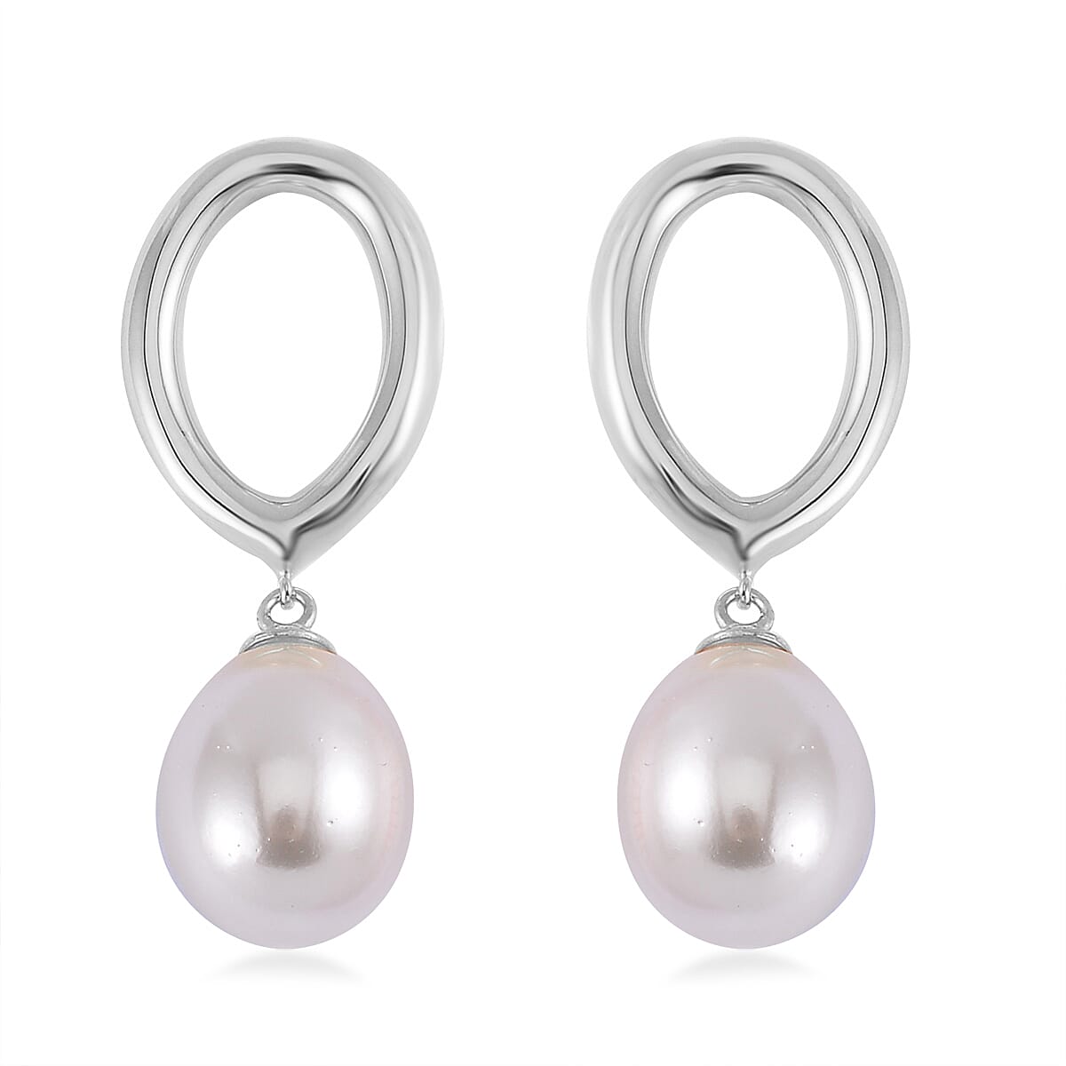 White Shell Pearl Drop Earrings in Rhodium Over Sterling Silver