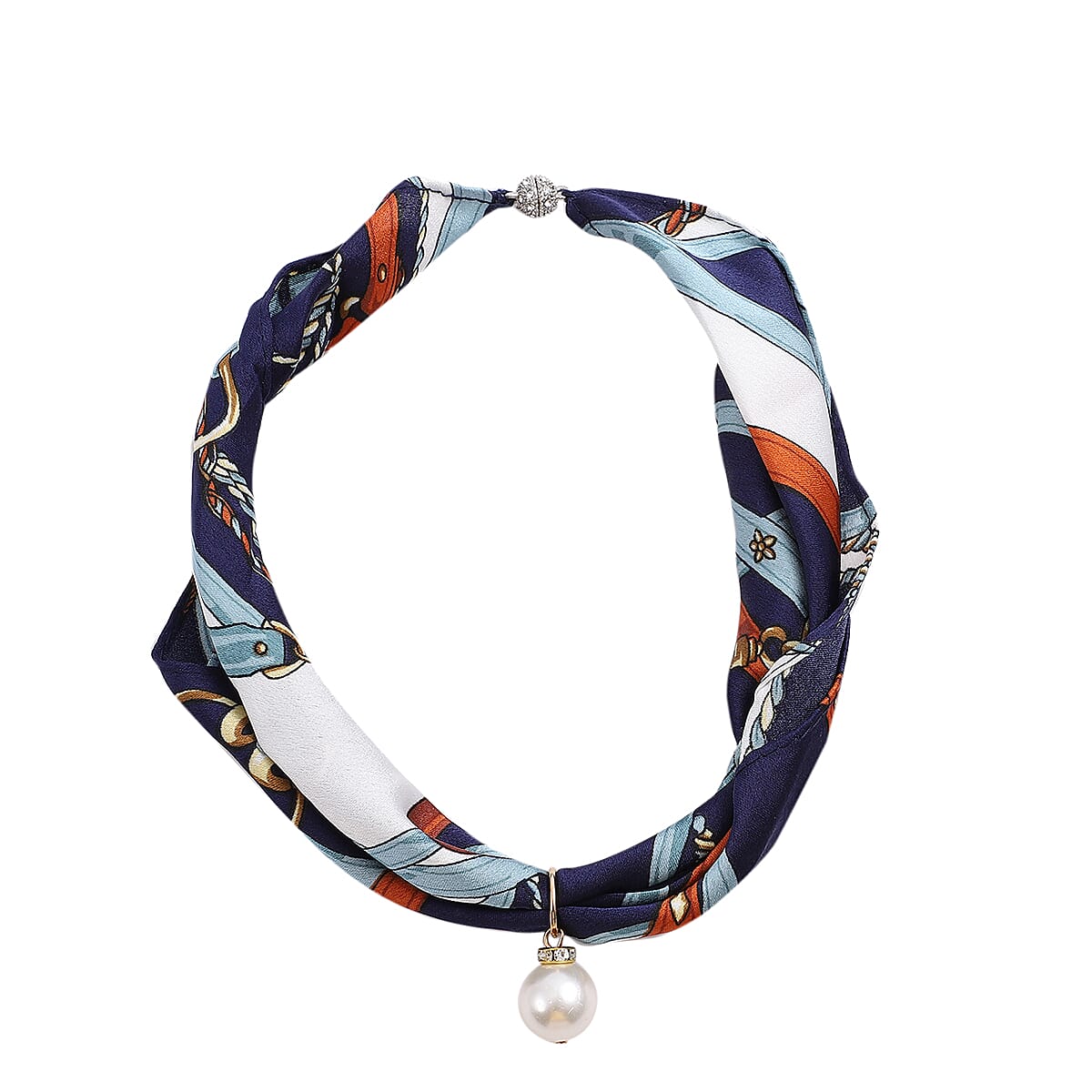 White Shell Pearl, White Austrian Crystal Printed Scarf with Drop Necklace (18 Inches) in Dualtone
