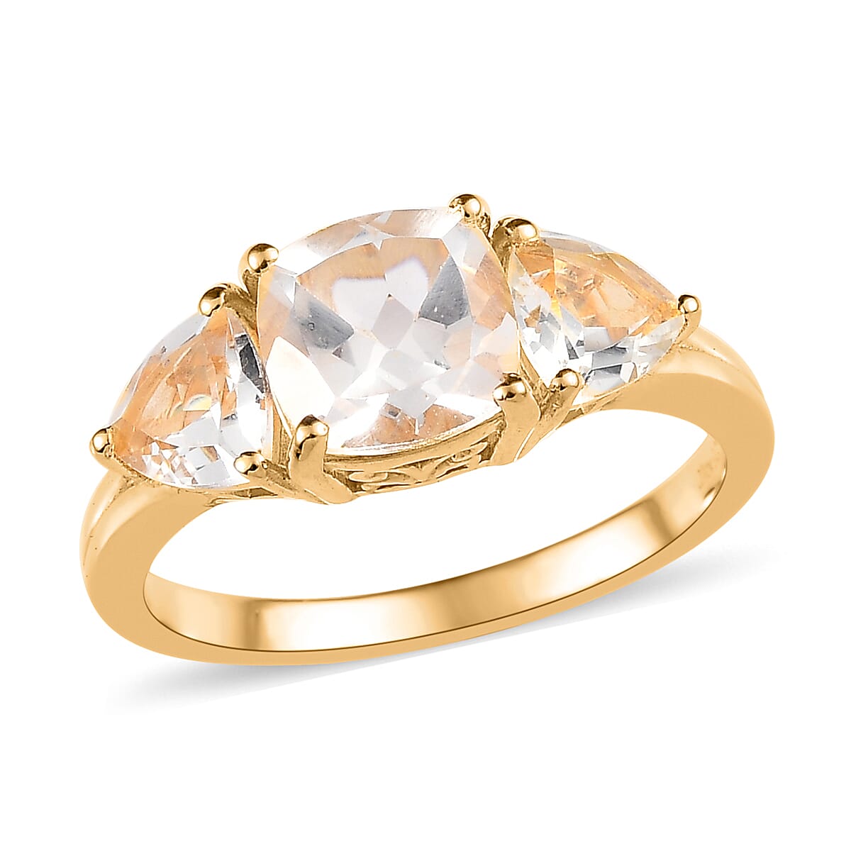 White Topaz 3 Stone Ring in Vermeil YG Over Sterling Silver (Size 9.0) 4.60 ctw